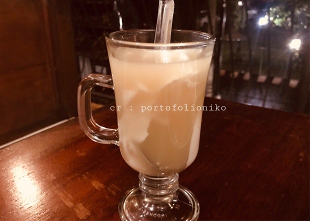 Lanjut ke menu andalan Indonesia. Ya, nasi. Karena aku adalah tipikal anak yang sukanya makan nasi yang berbanjir saus tasty, jadi aku pesan nasi ayam asam manis. One thing that I really like about this menu is…. kuantitas dan harga sangat sangat pas buat aku! Worth to try and worth the price! Ditambah lagi rasanya, tuh, sedep banget, porsinya tumpeh-tumpeh sampe mau nangis karena sebahagia itu! Ditambah lagi aku pesen wedang jahe yang ternyata pake topping kelapa! Beda banget inovasinya sampai bingung berkata-kata apa, bahkan sampai mengetik postingan ini aku masih bahagia (?) Oh iya, ditambah lagi, malem-malem sendu, gerimis manja, dingin… disuguhi dengan accoustic live music dengan lagu-lagu galau . Betapa mantapnya escape aku kali ini. Oh, wowww…!