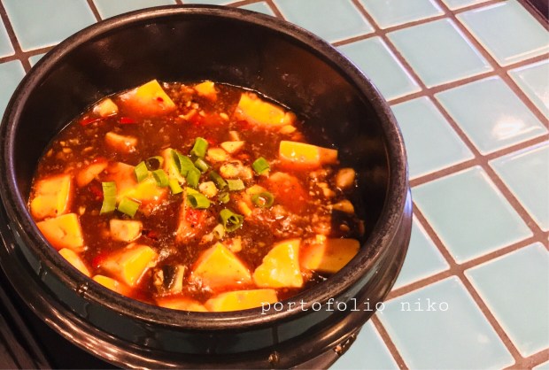 Yang terakhir tapi tidak tertinggal, aku pesan mapo tofu. Dari sekian menu yang aku pesan, menu ini adalah menu yang paling kaya rasa. Aku susah menjelaskannya, tapi rasanya begitu antik dan sangat bikin penasaran. Tentu saja, tofunya sangat halus dan empuk dengan topping jamur yang kenyal. The best part is the sauce! Rasa pedas, asin, dan bumbu-bumbu lainnya itu menyatu semua. Coba kita padukan dengan menu-menu lainnya,… ahhh! Membuat aku ingin kembali ke resto ini lagi!