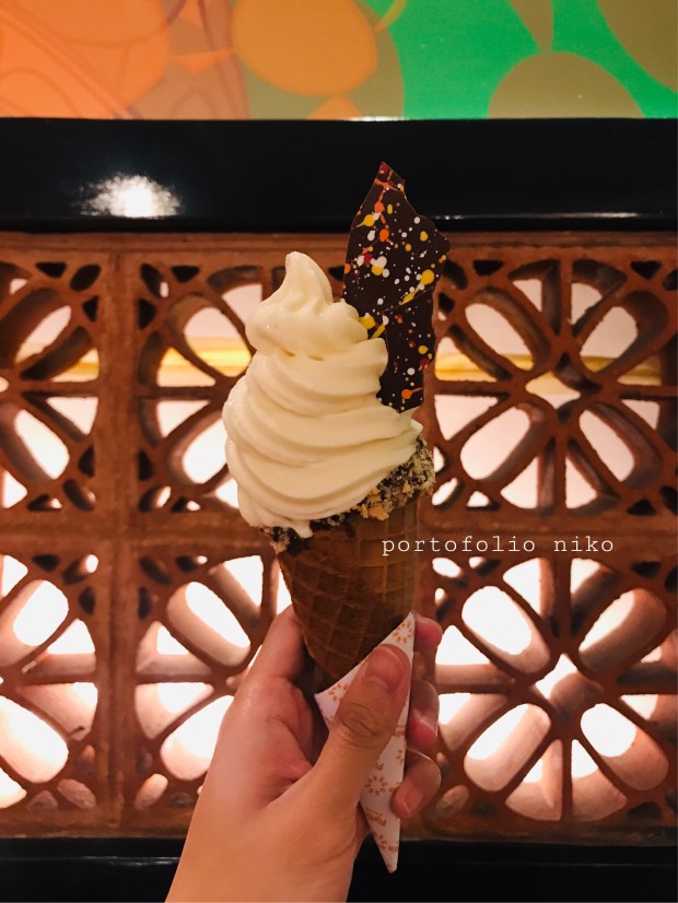 Es krim di atas adalah Panacota White Chocolate Soft Ice Cream. Aku suka banget dengan es krim ini dan sangat memenuhi ekspektasi aku. Pertama, es krimnya gak cepet banget cair (meskipun es krim yang tanpa bahan pengawet biasanya memang gampang cair), but trust me, this ice cream also melts, but is not too fast. Kedua, rasanya tuh gak yang manis annoying gitu loh gaes, jadinya gak enek. Selain itu, mereka juga kasih topping lempengan coklat dan cone-nya pun enak renyah! Sungguh luar biasa!